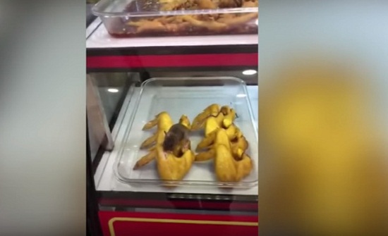 بالفيديو: في أحد المطاعم.. فأر يلتهم أجنحة الدجاج!