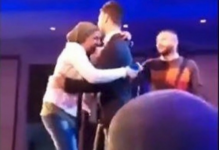 فيديو يثير ضجة...محجبة تحتضن وتقبل نجم ارب ايدول!