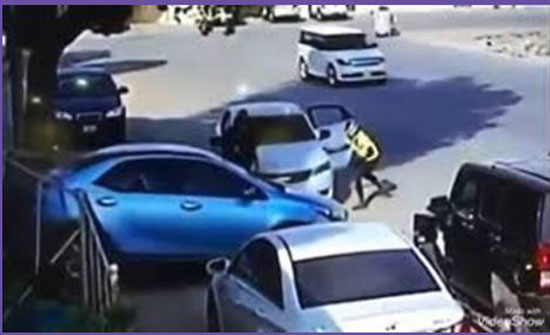 بالفيديو شاهد ماذا فعل شاب لحظة محاولة لصين سرقة سيارته