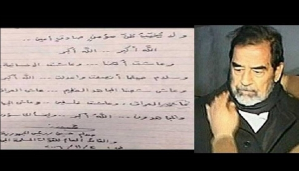 بالتفاصيل ...ابنه صدام تكشف الرساله التي كتبها والدها قبل اعدامه بساعات