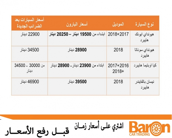 شــركة البــارون تلتزم بعدم رفع الأسعار على سياراتها