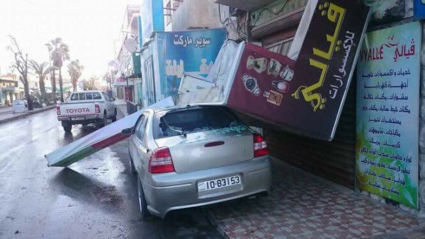 ما فعلته الرياح القوية بسيارة اسعاف وسيارات المواطنين