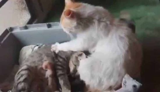 بالفيديو.. قط يواسي زوجته بعد الولادة!