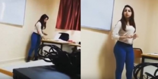 بالفيديو.. معلمة تثير الجدل بسبب ملابسها داخل الفصل