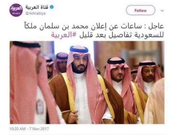 قناة "العربية" تعلن الامير محمد بن سلمان ملكاً للسعودية ومن ثم تتراجع .. صورة