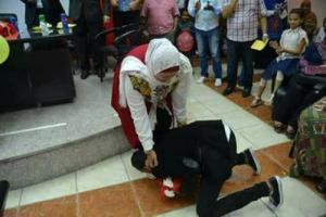 شاهد شاب يقبل قدم والدته بعد تكريمها
