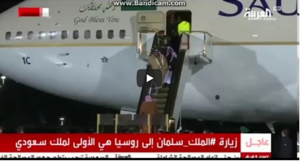 شاهد بالفيديو ...ردة فعل الحارس الشخصي للملك سلمان لحظة تعطل سلم الطائرة