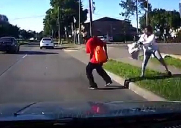بالفيديو.. لقطات صادمة .. امرأة تدفع حبيبها أمام سيارة مُسرعة لتدهسه “انتقاماً”
