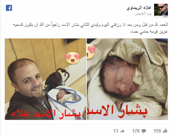فلسطيني يسمي ابنه "بشار الأسد" لشدة حبه للرئيس السوري ..صورة