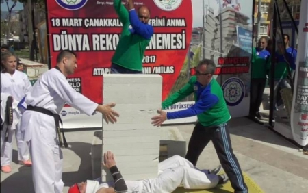 تُركي يدخُل 'غينيس' بعد تحطيم 16 حجر بناء على صدره!