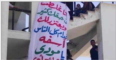 طالبة تضع لافتة اعتذار لحبيبها داخل الجامعة