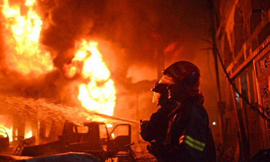 حريق كبير بمستودع مواد كيماوية في الشونة