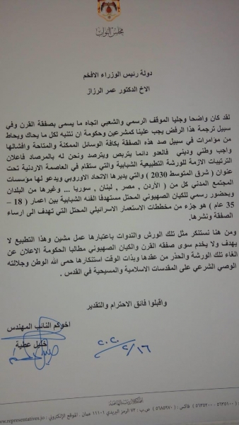 النائب خليل عطية يستنكر ورشة شبابية تطبيعية وبحضور رسمي للكيان الصهيوني ستقام بالأردن