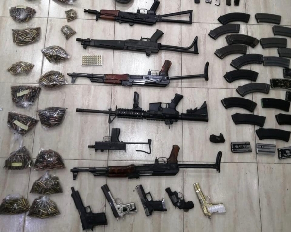ضبط ١١ سلاحاً نارياً خمسة منها اوتوماتيكية وكميات كبيرة من الذخيرة بمداهمة منزل احد الاشخاص في العاصمة