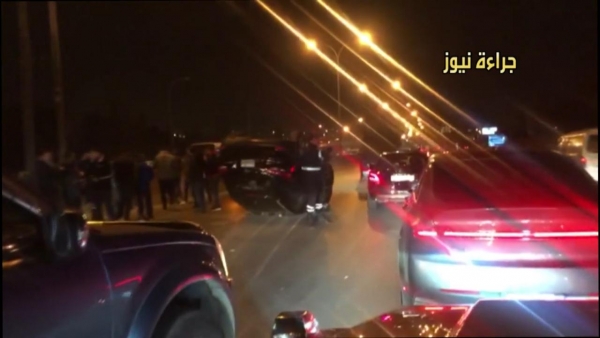 شاهد بالفيديو .. حادث سير بين مركبتين على طريق المطار وإنقلاب إحداهما وأزمة سير خانقة