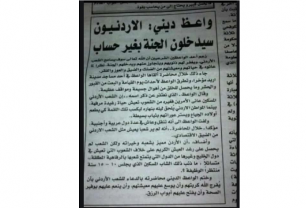 واعظ ديني: الاردنيون سيدخلون الجنة بغير حساب .. صورة