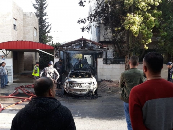 إحتراق مركبتين أثناء اصطفافهما داخل كراج في شارع الجاردنز .. صور