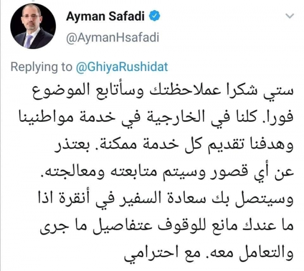 وزير الخارجية يعتذر لمواطنة اردنية في تركيا .. تفاصيل