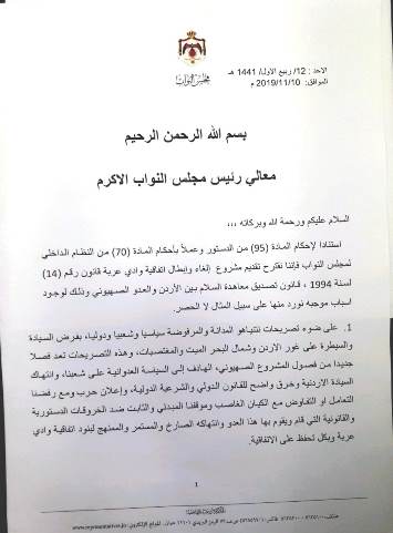 مذكرة نيابية لإلغاء اتفاقية وادي عربة