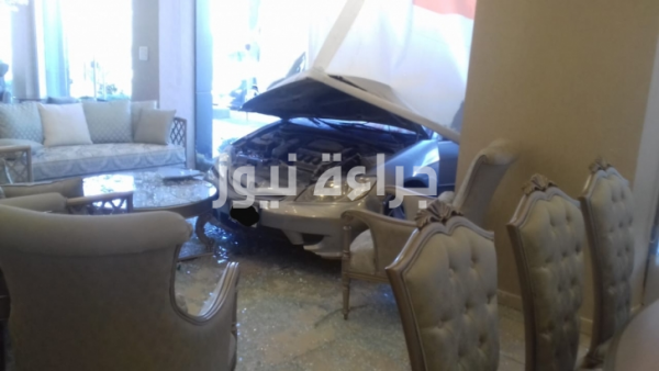 شاهد بالصور سياره تحطم واجهة معرض اثاث و تستقر داخله بشارع مكه بسبب...