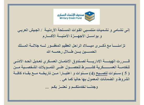 بيان لمنتسبي القوات المسلحة حول القروض الشخصية