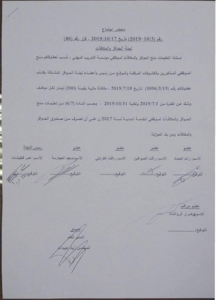 200 دينار مكافآة مالية لموظفين في التدريب المهني
