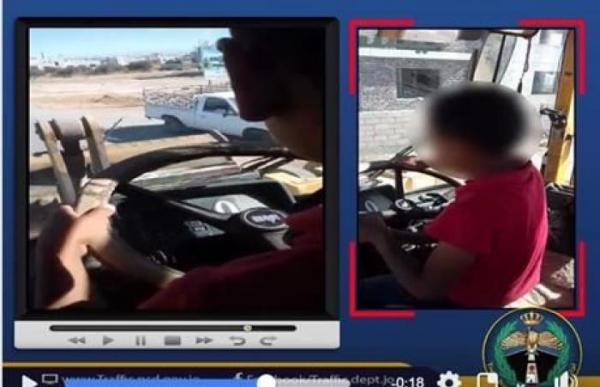 ضبط حدث قام والده بتصويره اثناء قيادته (جرافة) في مادبا