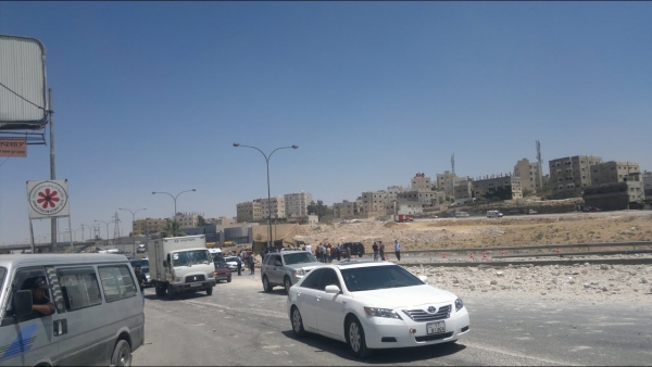حادث سير بين 3 مركبات وإصابة خمس مواطنيين في اتوستراد الزرقاء عمان .. وأزمة سير خانقة