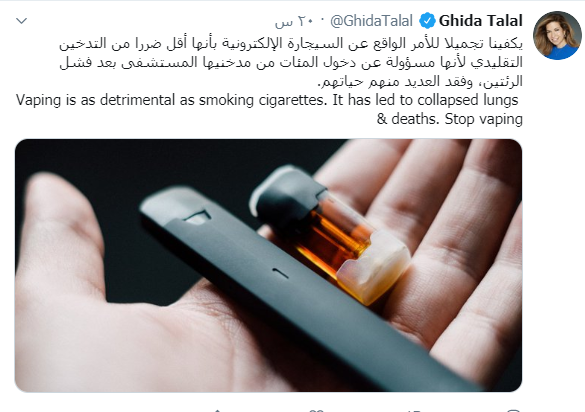 الاميره غيداء طلال تحذر من السيجاره الالكترونيه وتؤكد : تسببت بفشل الرئتين