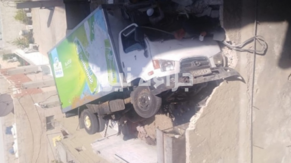 صورة حصرية .. في حادثة غريبة بجبل النظيف ..تدهور "بيك اب" على سطح أحد المنازل وهذا ما حصل!