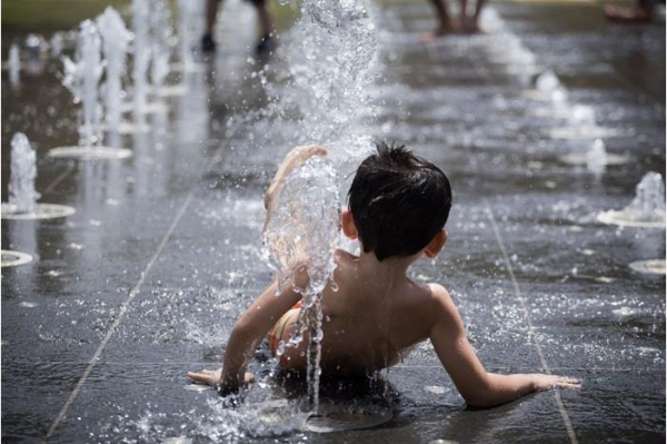 بالفيديو موجة الحر تدفع أطفالا للسباحة في بركة المطار