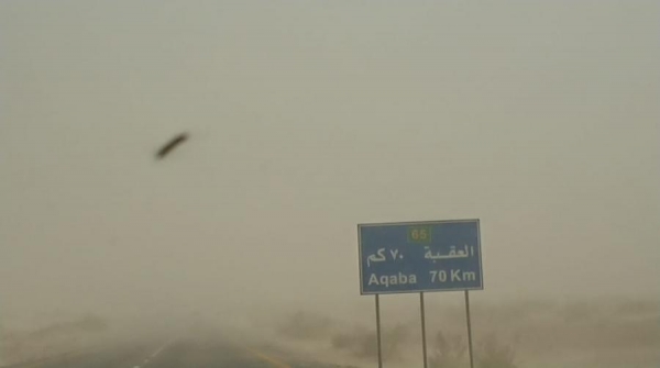 بالصور .. عواصف رملية تتسبب بانعدام جزئي للرؤية شمال مدينة العقبة