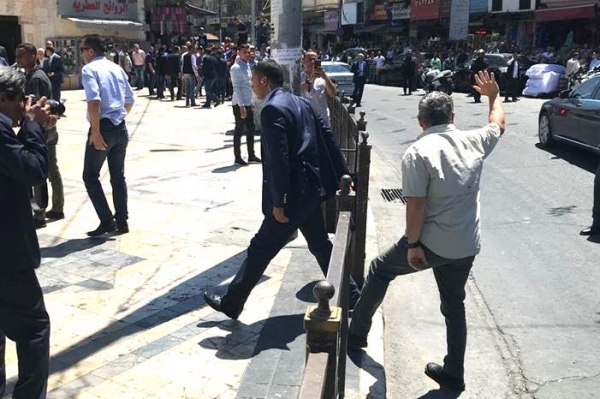 مجموعة من الأشخاص يتهجمون على مركز الحسين للسرطان ويقومون بتكسير أجهزة طبية ومحتوياته