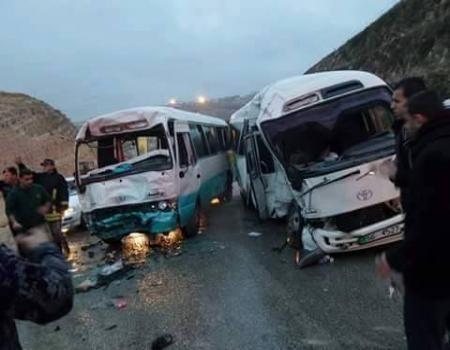 اصابة (26) شخصا بحادث تصادم بين حافلتين في منطقة الظليل