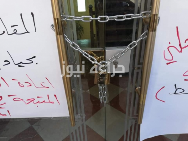 بالصور محتجين يغلقون فرع نقابة المهندسين بالطفيله بالجنازير تفاصيل