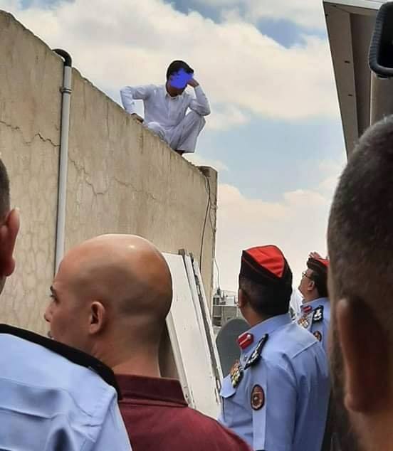 مواطن يهدد بالانتحار من اعلى مبنى وزارة الاوقاف