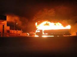 حريق في صهريج نقل حــليب على جسـر أبو نصـير - تفاصيل