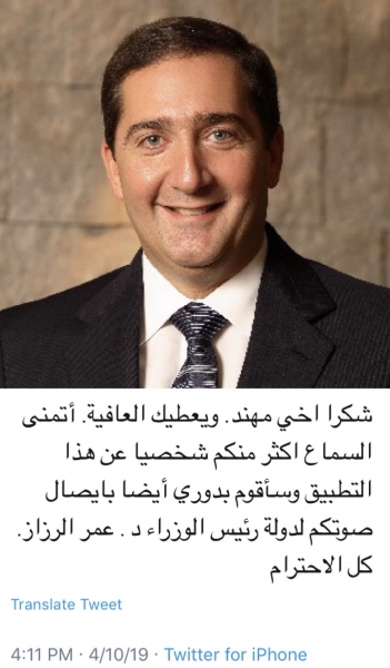 الرفاعي يُغرّد استجابة لشاب أردني