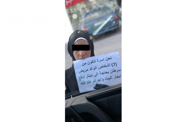 بالصورة .. عشرينية تتسول بيافطة في عمان الغربية دخلها اليومي 250 دينار وهذا ما ستشتريه قريباً