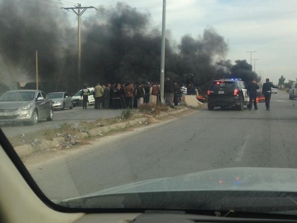 بالصور ...اغلاق الطريق الدولي في لواء الرمثا امام الصوامع
