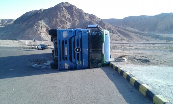 انقلاب شاحنة على الطريق الصحراوي